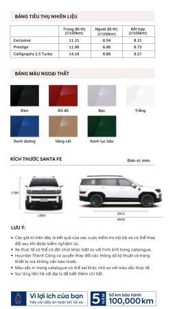 Mẫu xe New Hyundai SantaFe 2024 được sản xuất, lắp ráp tại Việt Nam. Mẫu SUV này sở hữu kích thước chiều dài, chiều rộng và chiều cao lần lượt là 4.830 x 1.900 x 1.780 mm, chiều dài cơ sở 2.815mm & khoảng sáng gầm xe là 177mm. Có thể thấy ở thế hệ mới này có thể nói là tăng lên khá nhiều so với phiên bản trước giúp tạo thêm không gian rộng rãi cho tất cả hàng ghế.